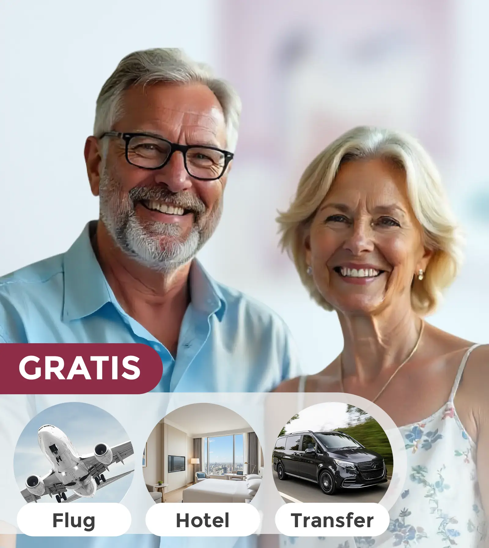 Leiden Sie unter Zahnverlust und wünschen sich Ihr Lächeln zurück? Mit hochwertigen Zahnimplantatedn erhalten Sie feste Zähne – bis zu 60 % günstiger als in Deutschland, Österreich oder der Schweiz.